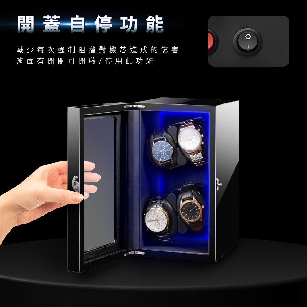 4錶架展示版 機械表上鍊盒 手錶展示盒 機械手錶 手錶收納盒 動力儲存盒 搖表器 上鍊盒 轉錶器 旋轉錶盒 自動上鍊 手錶收納 5-MW4B