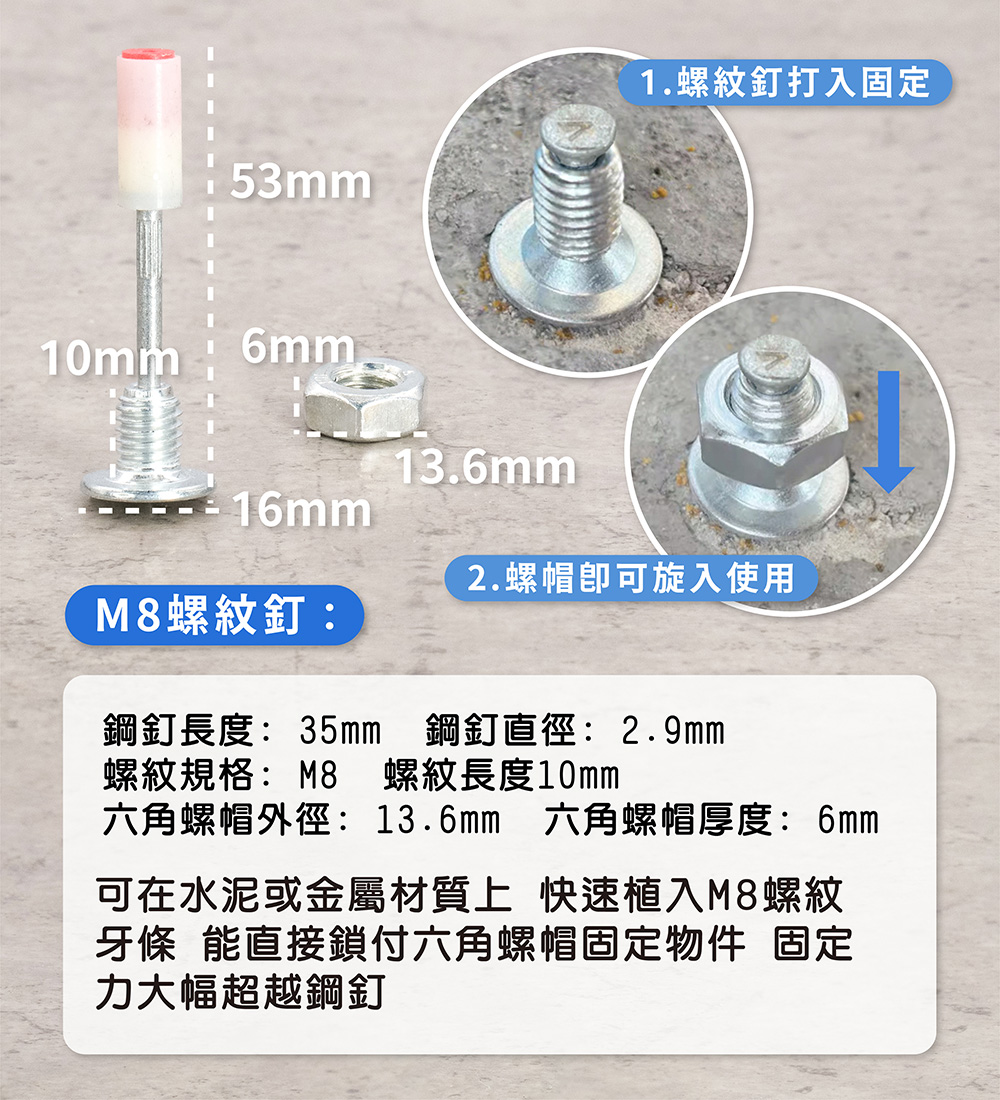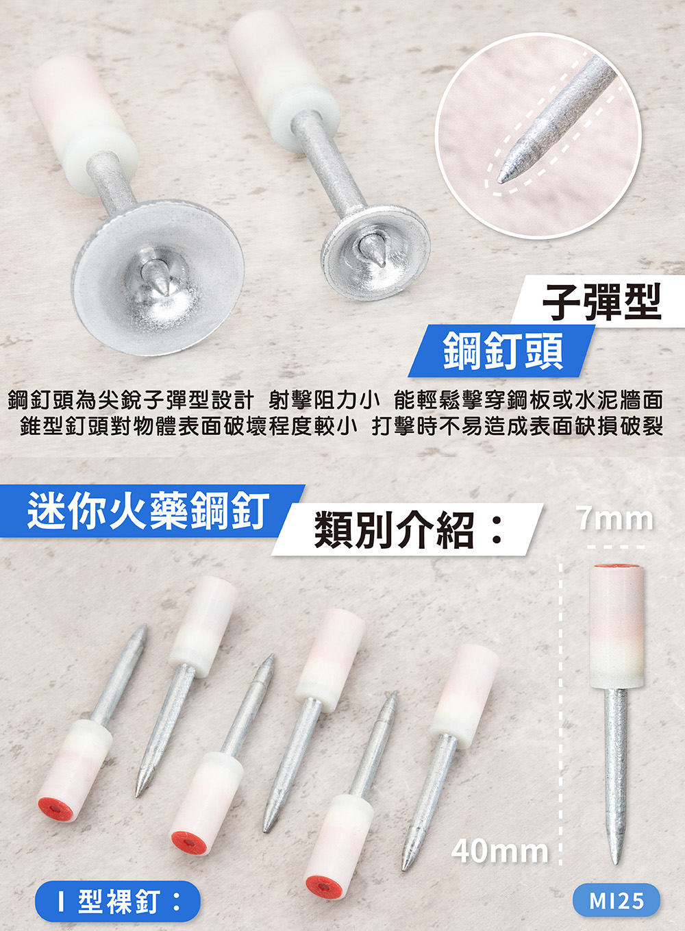 鋼釘材質: #60 工具鋼