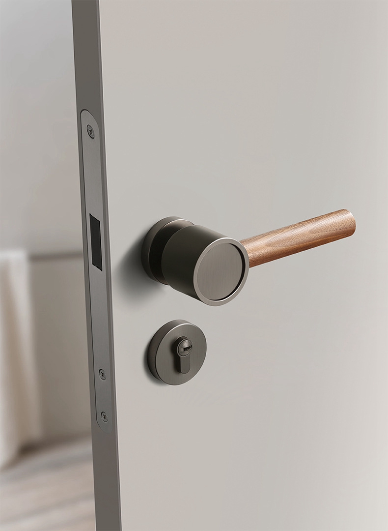 - 鎖芯結構:內部有狼牙插芯和七顆彈珠,這種結構設計增強了防撬性能,同時保證鑰匙開啟的順暢性。旋轉把手與鎖芯配合緊密,輕輕旋轉把手,鎖舌即可立即彈出或縮入,升級的扁型旋鈕,讓開關門時更受力,操作順手。