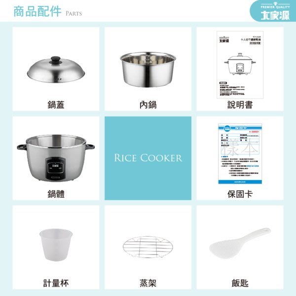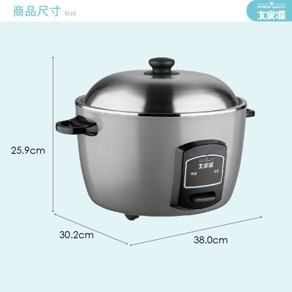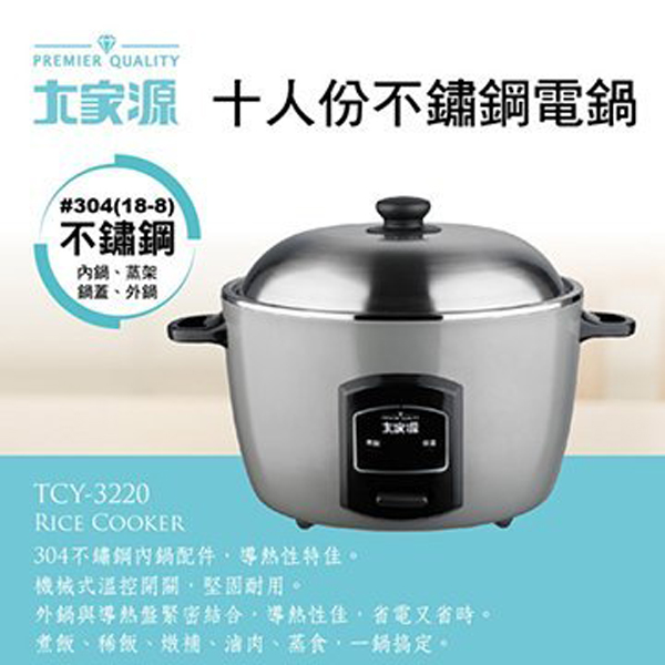 2.主要材質:#30418-8不鏽鋼-內鍋、蒸架、鍋蓋、外鍋冷軋板-外殼PP-鍋蓋頭、把手。