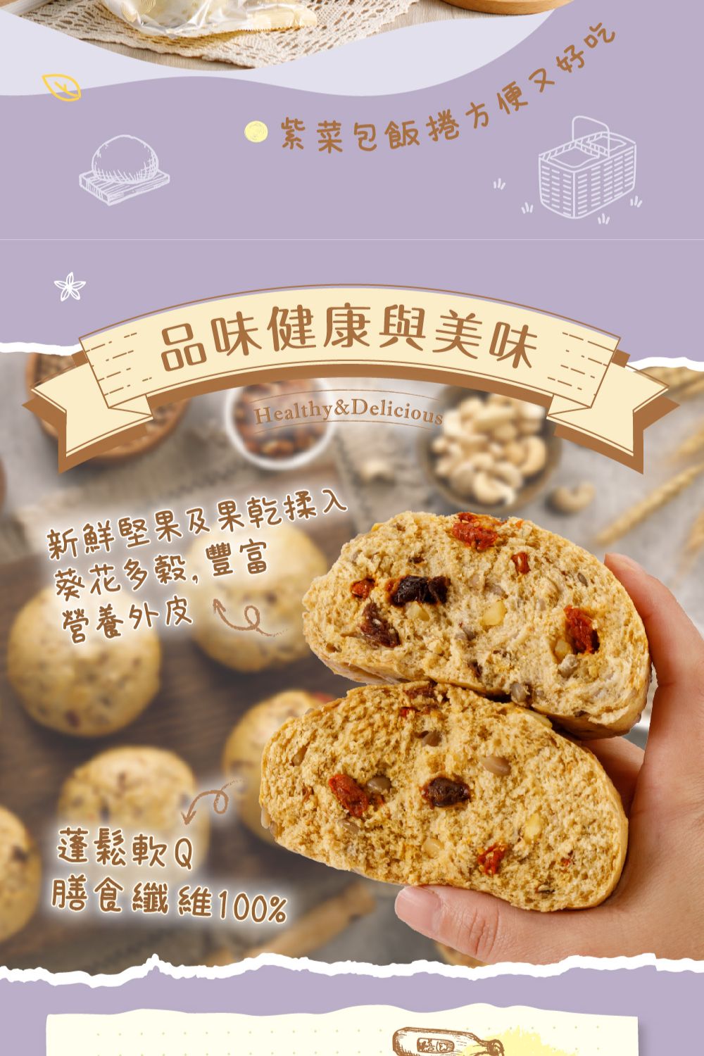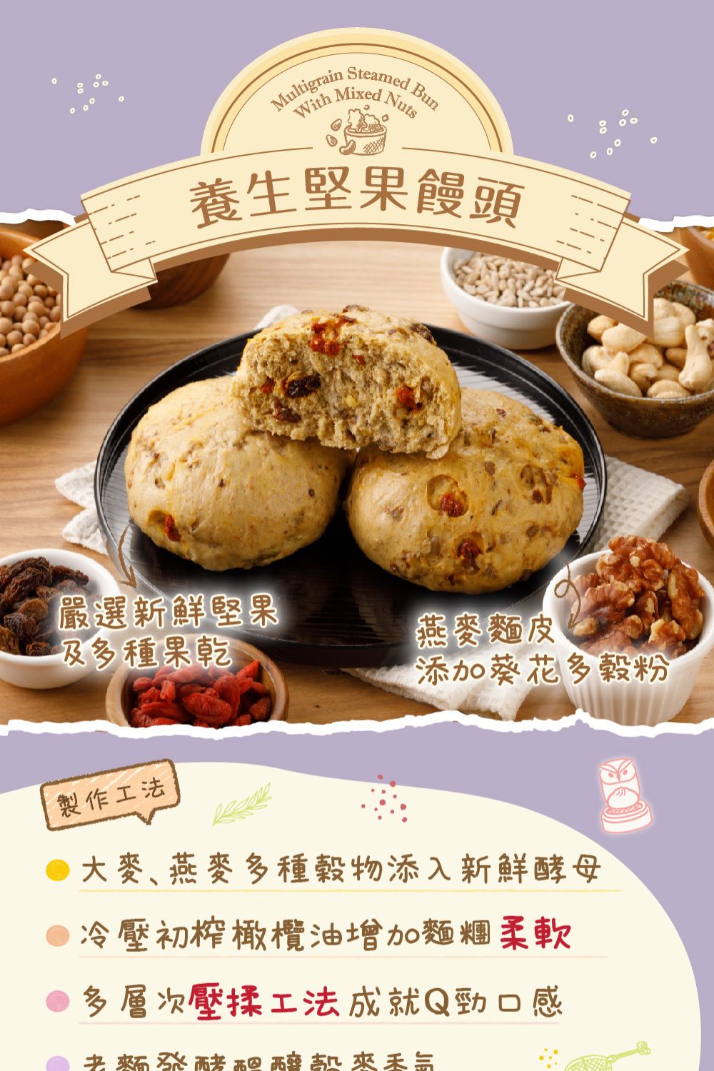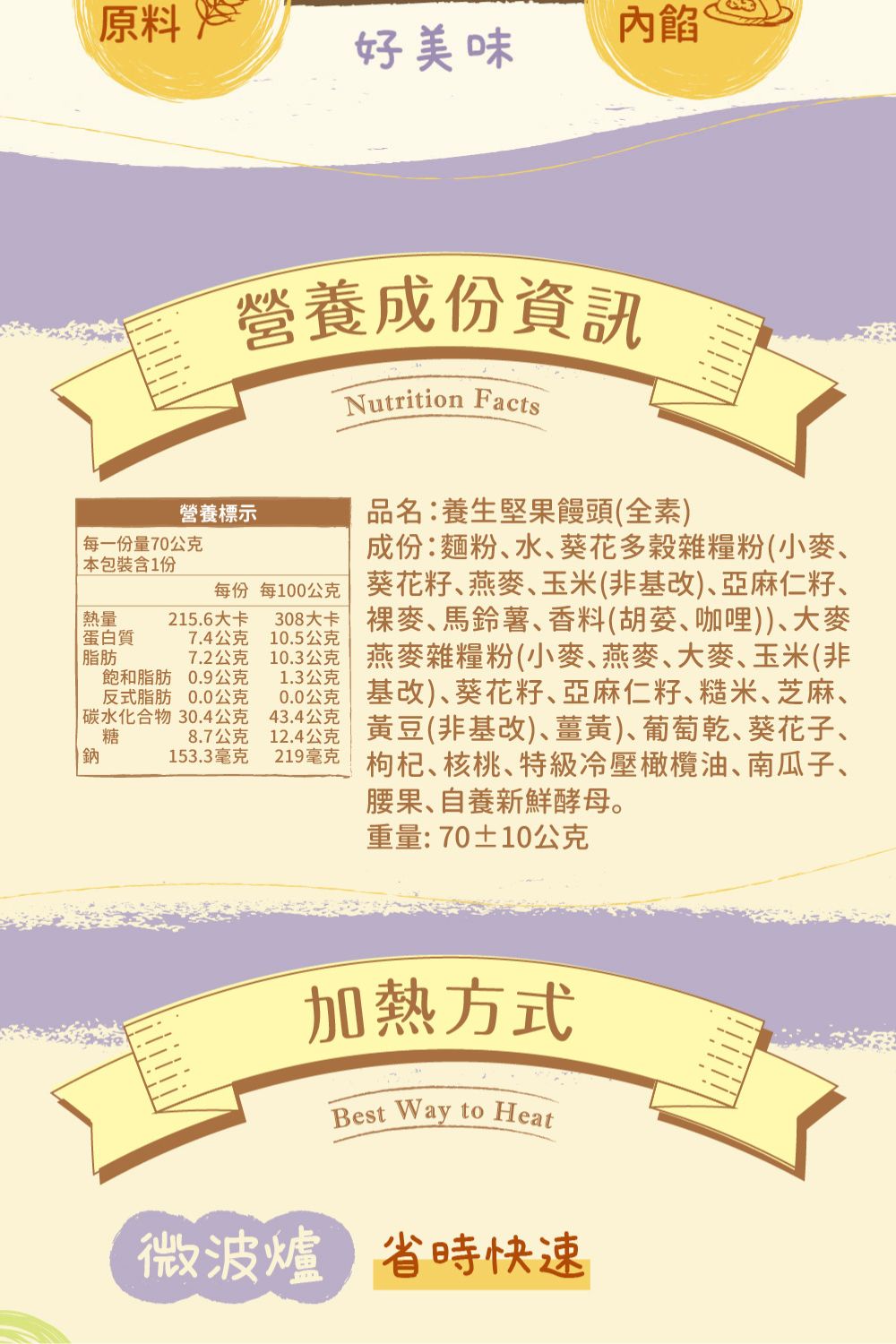 養生堅果饅頭(全素/純口味)膳食纖維含量:5.9g/每100公克