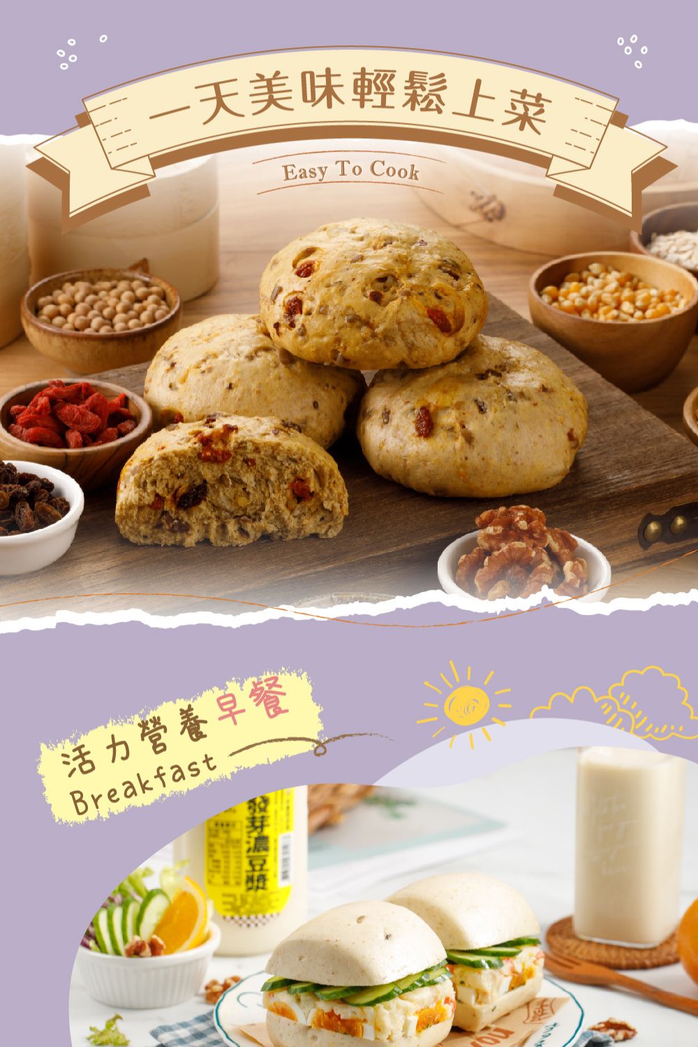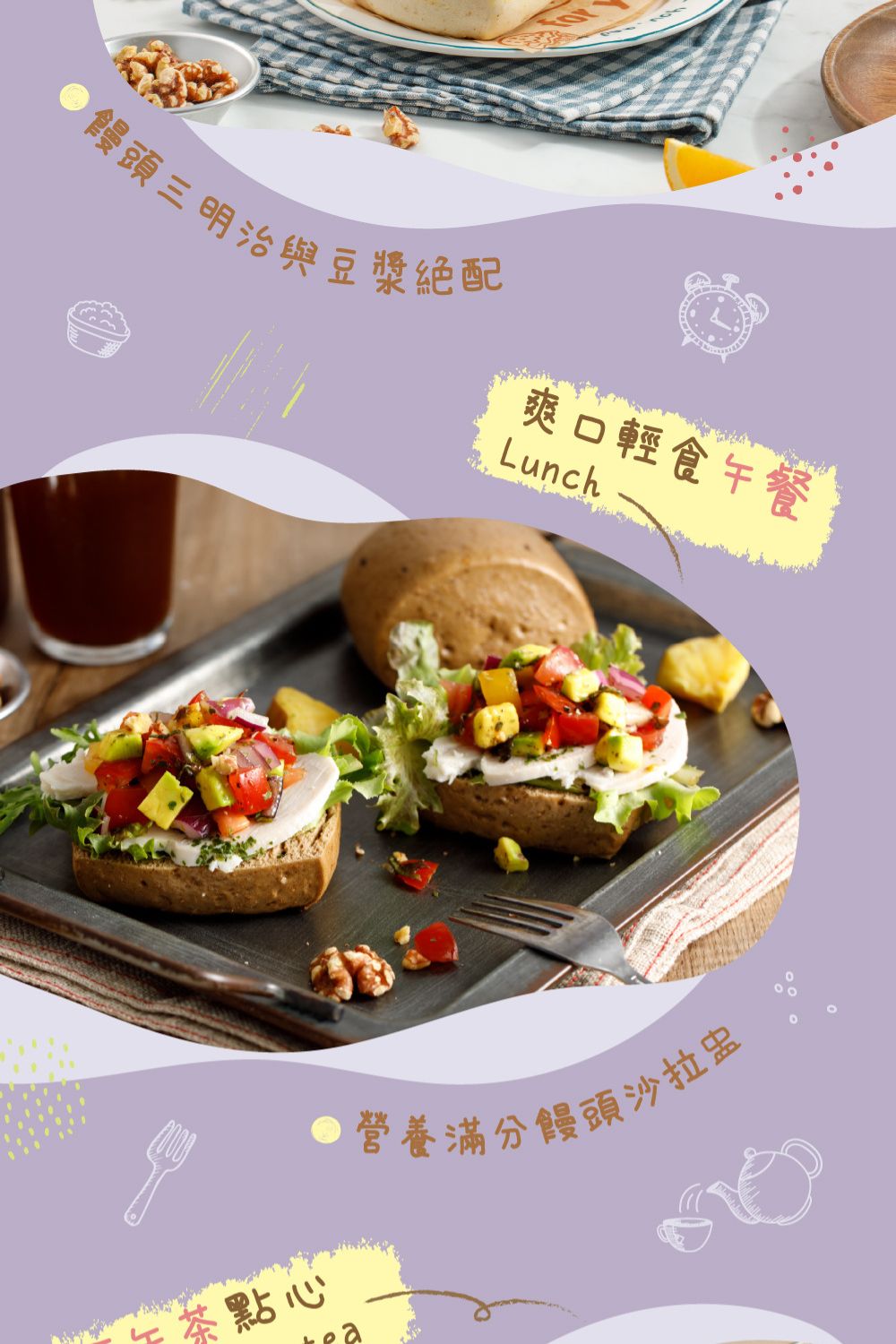 ✿穀物饅頭可自由搭配食材,做成早午餐料理,如烤饅頭、饅頭夾蛋、饅頭漢堡等選擇,取代白飯當主食,能增加膳食纖維攝取,是替換主食的健康選擇!