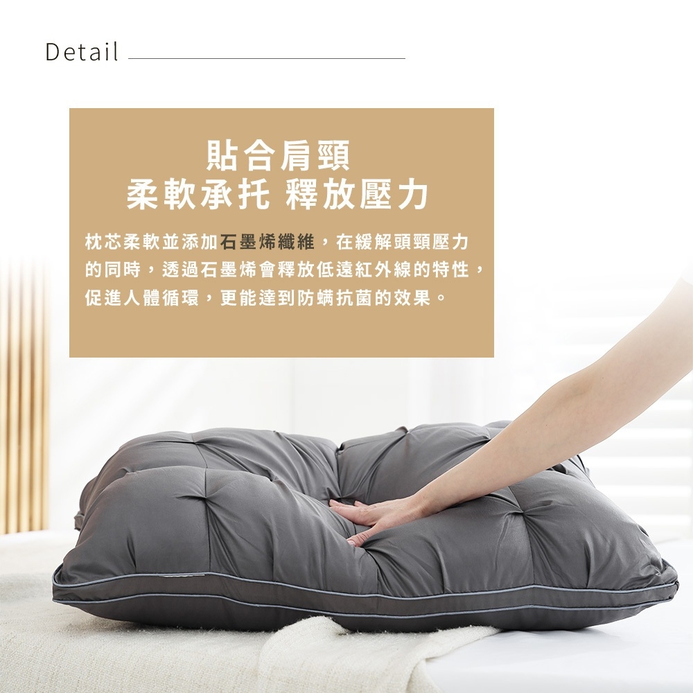 👉🏻枕心柔軟並添加✨石墨烯纖維✨每個角度都貼合肩頸,提供全方位呵護