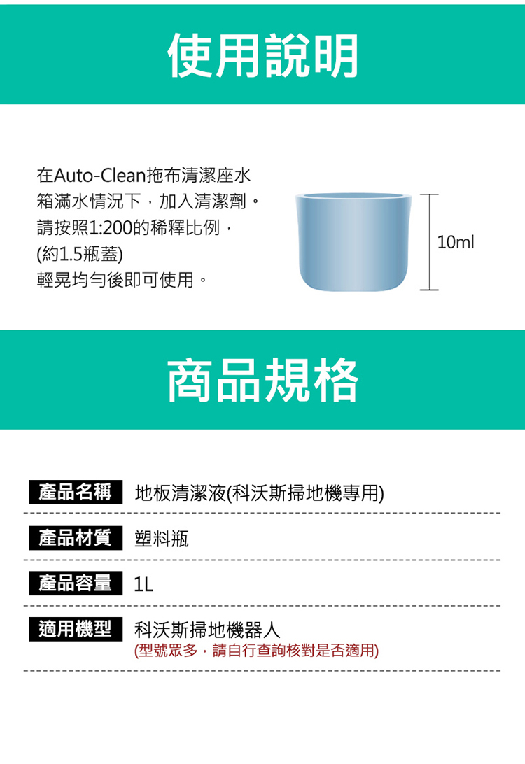 1L通用款,適用所有有清水箱的機器人,請稀釋過後再使用!!