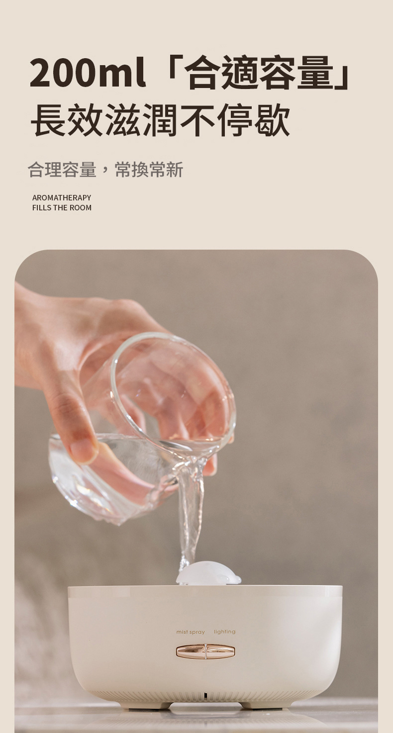 適合臥室/客廳/辦公室等日常使用空間,擴香、加濕、裝飾一機多用。