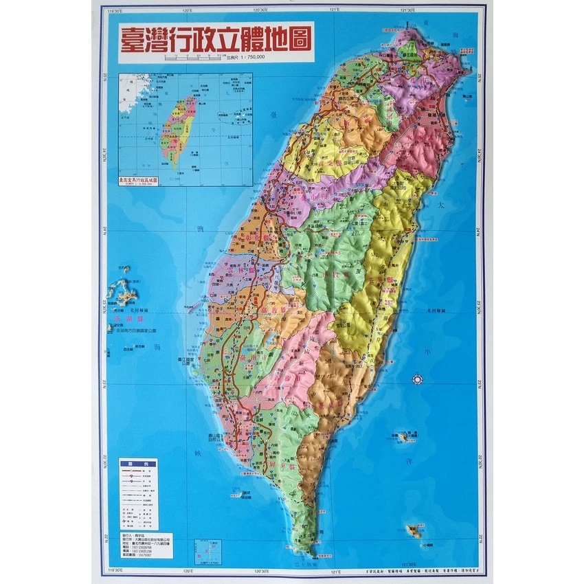* 地圖繪製精美,行政區界、國道、省道、台鐵、高鐵、河流、山脈、市鄉鎮地名、風景區等註記標示清楚。